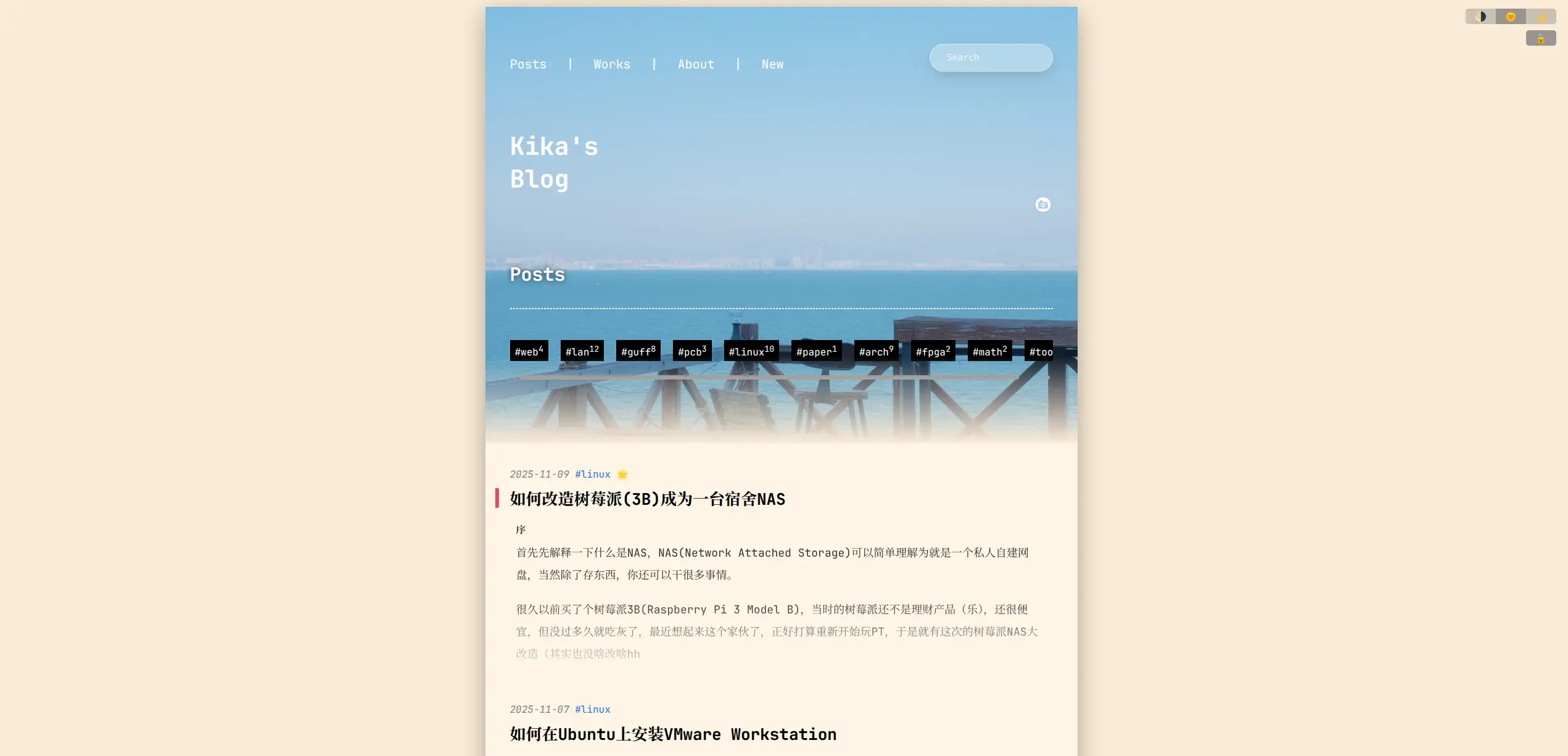 santiego.ink全面重定向至新域名kika233.tech - 2025-11-15: 将原来的Proj栏目改为Works栏目,并且全面重新设计